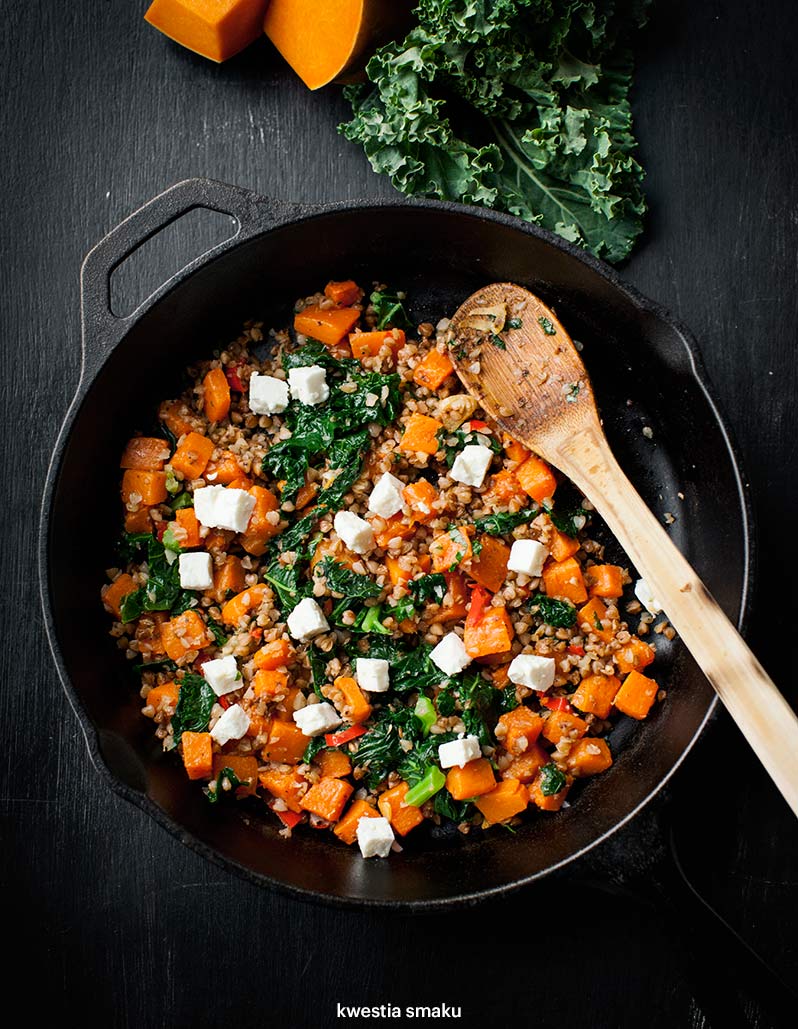 KASZA GRYCZANA SMAŻONA Z DYNIĄ I JARMUŻEM